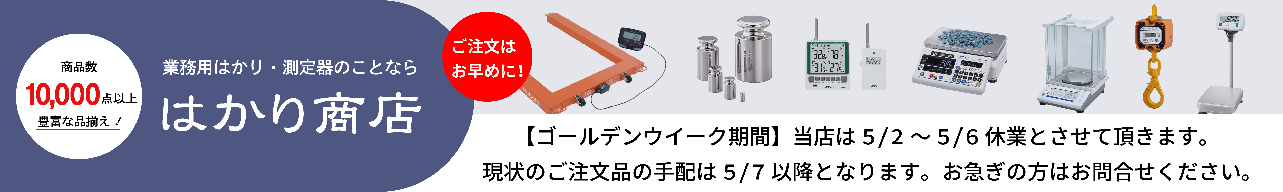 はかり商店は、業務ではかりを扱う全ての方に、最もお安く、安心してご購入して頂ける業界初の「はかり専門通販サイト」です。