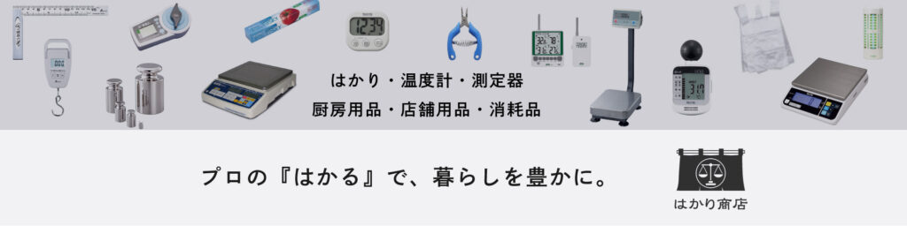 計量器以外にも調理向けの温度計、防水タイマー、塩分計などフードビジネスに欠かせない「はかり」を多数取り扱っております。