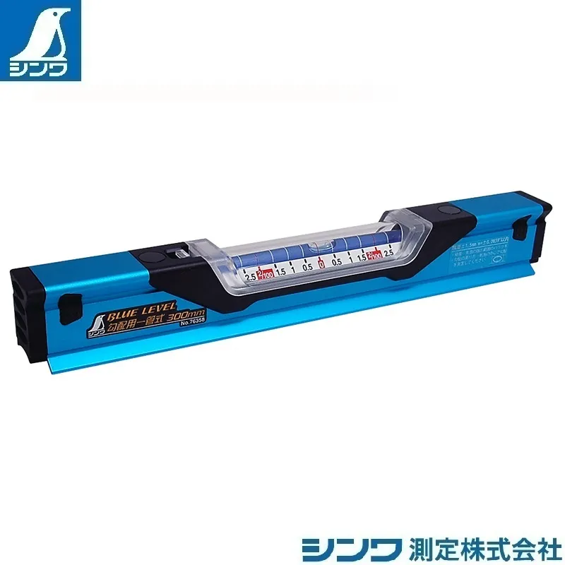 シンワのブルーレベル勾配用一乾式は、読み取りやすい大型ガラス気泡管を採用しました。そして、蓄光シート付気泡管なので暗がりの作業に便利です。
