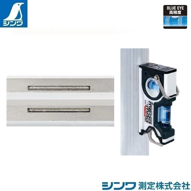 シンワのハンディレベルMEGA-MAGは、吸着力3倍(シンワ測定㈱社比)のヨーク付ネオジム磁石採用で、単管を叩いても落ちません。