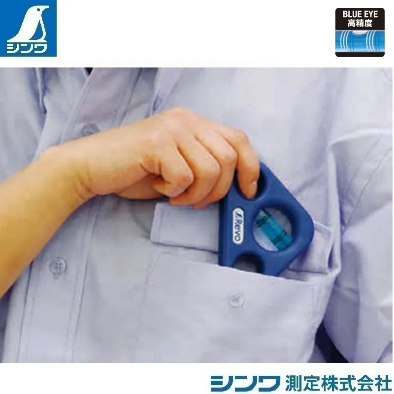 シンワのハンディレベルRevoは、ポケットサイズでで持ち運びに便利です。クリアブルーの溶液とホワイトラインで視認性の高い気泡管を採用しました。