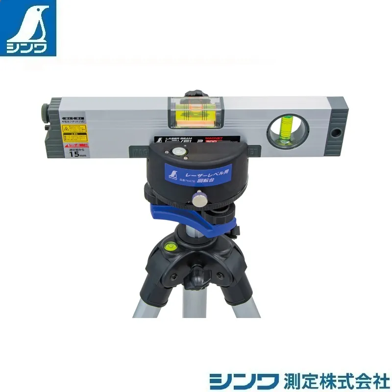 シンワのレーザーレベル用回転台は、レーザービームレベル2を取り付け、三脚に装着することで窓枠の位置出しなど高さ合わせに活用でき
