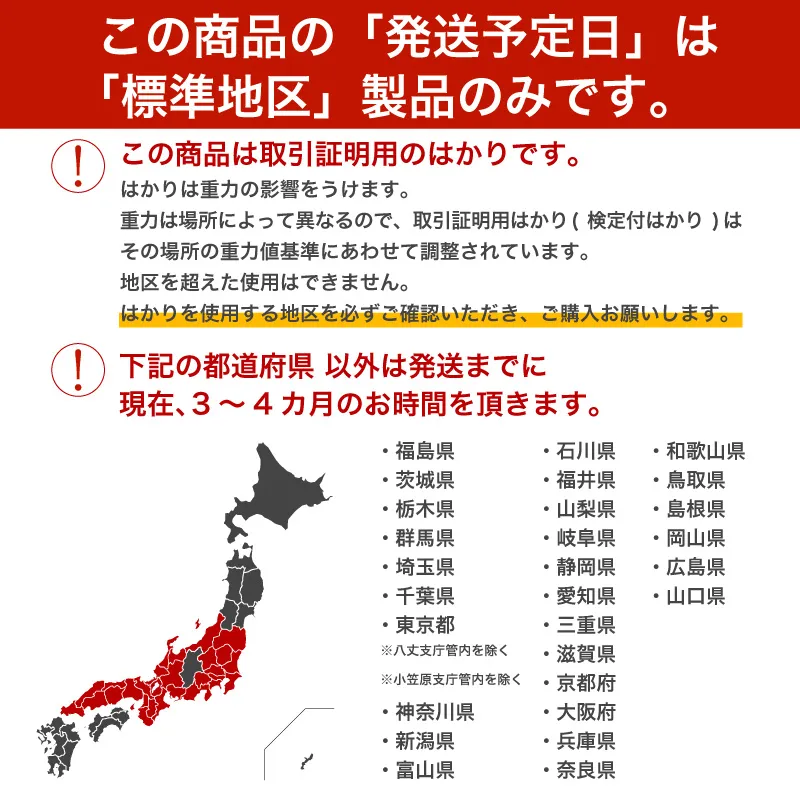 発送予定日は地区番号「3」の地域でご使用できるはかりの発送予定日となっております。