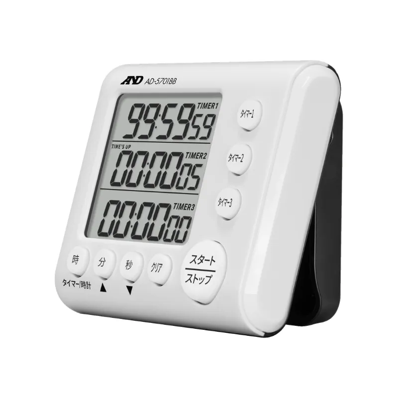 3つのタイマーを独立または同時にスタート/ストップ出来ます。また、タイマーは99時間59分59秒まで、1秒単位で設定が可能です。