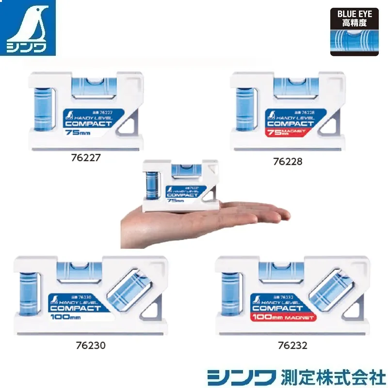 シンワのハンディレベル コンパクトは、高精度とコンパクトサイズを両立しました。測定面の長さにおいて業界最小クラスです。ポケットサイズで携帯に便利です。