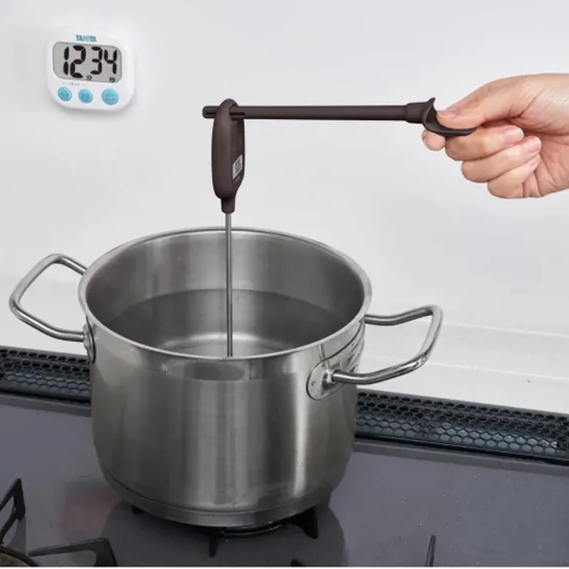 温度がひと目でわかるデジタル温度計は、パンの発酵温度や加熱調理食材の中心温度の確認に最適です。センサーホルダーをフック穴に差し込んで、火元から手を離して使用可能です。キッチンを楽しくするポップなカラー展開で、食材ごとに色分けすれば食中毒対策にも役立ちます。