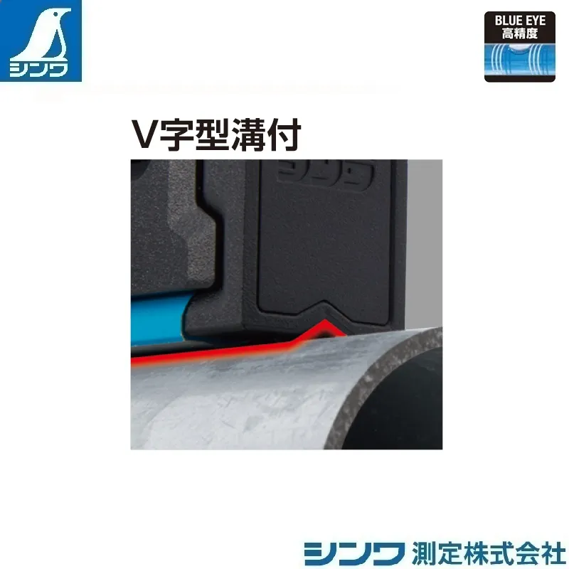 ブルーレベルの測定面は、V字型溝付でパイプ測定もできます。