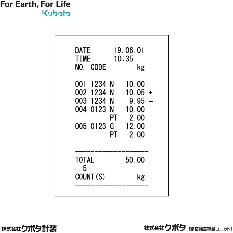 本オプションは、デジタル台秤KL-SD2シリーズ及びKL-IP2シリーズ用のサーマルジャーナルプリンタです。本オプションを取り付けた後、はかり本体のファンクション設定を変更することにより、計量データや計数データを印字することができます。