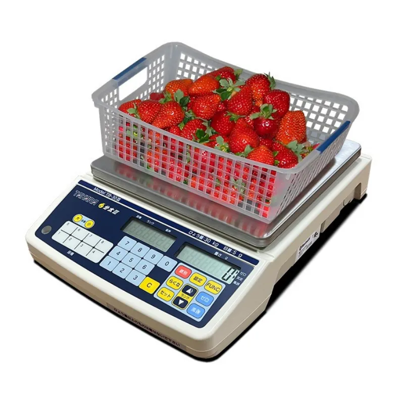 TB-30Ⅲ | 30000g | 5g | 12g~30kg | 0.5g | 20ランク ※ | 16品種 | 300×280mm | 330×425×108mm | 約4.6kg | 液晶(LCD) | ACアダプタまたは乾電池 | ACアダプタ、取扱説明書 |