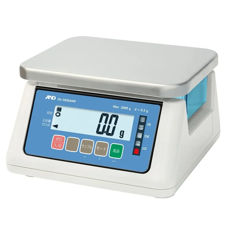 翌営業日~3日 | SH-3000AWP-BT | 3000g | 0.1g/0.2g/0.5g/1g (出荷時設定:0.5g) | ±1g | 0.5g | 230×190㎜ | 236×260×148㎜ | 約4.0kg(乾電池を除く) | 液晶バックライト付 | 単一乾電池×6本 | 乾電池は、別売です。 |