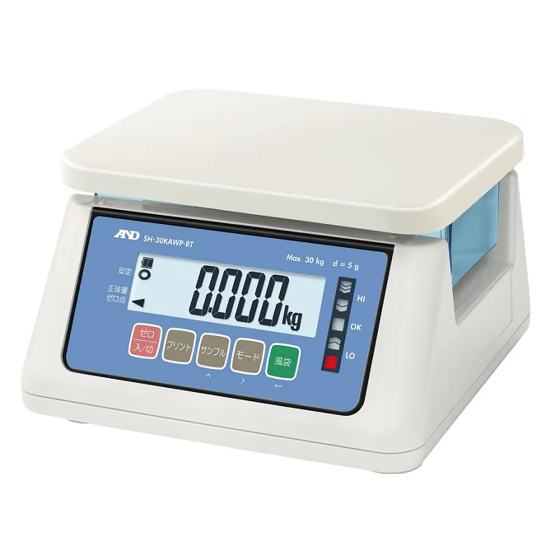 翌営業日~3日 | SH-30KAWP-BT | 30㎏ | 1g/2g/5g /10g(出荷時設定:2g) | ±10g | 5g | 230×190㎜ | 236×260×148㎜ | 約4.0kg(乾電池を除く) | 液晶バックライト付 | 単一乾電池×6本 | 乾電池は、別売です。 |