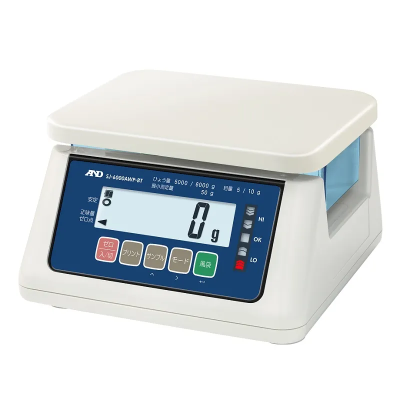 翌営業日~3日 | SJ-6000AWP-BT | 6000g | 5g(0~5000g)/10g(5000~6000g) | 230×190㎜ | 236×260×148㎜ | 約4.0kg(乾電池を除く) | 液晶バックライト付 | 4級 | 単一乾電池×6本 | 乾電池は、別売です。 |
