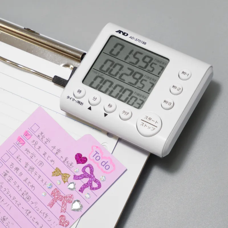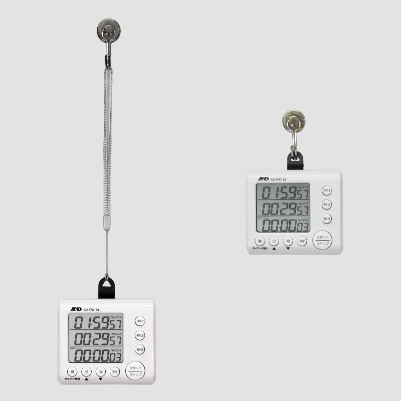 3つのタイマーを独立または同時にスタート/ストップ出来ます。また、タイマーは99時間59分59秒まで、1秒単位で設定が可能です。