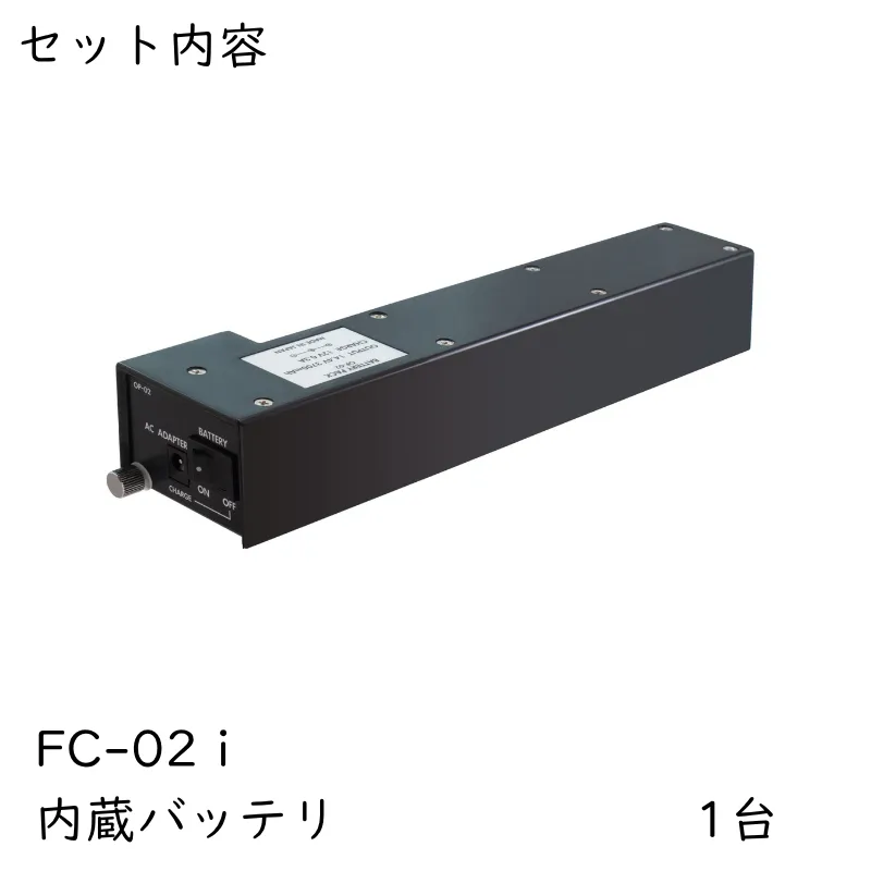 内蔵バッテリ(FC-02i)付きで、AC電源のない場所での使用可能